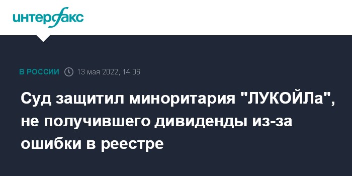 Суд защитил миноритария "ЛУКОЙЛа", не получившего дивиденды из-за ошибки в реестре