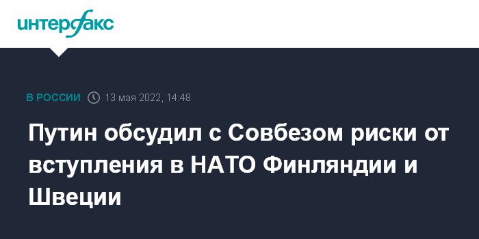 Путин обсудил с Совбезом риски от вступления в НАТО Финляндии и Швеции