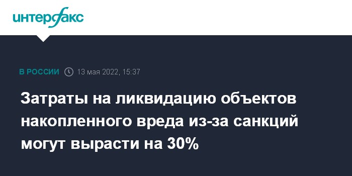Затраты на ликвидацию объектов накопленного вреда из-за санкций могут вырасти на 30%