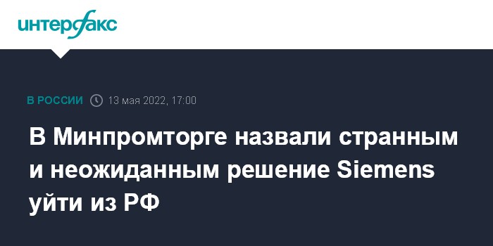 В Минпромторге назвали странным и неожиданным решение Siemens уйти из РФ