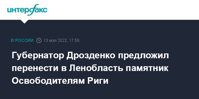 "Ленинградская область готова разместить памятник советским воинам, который собираются демонтировать власти Риги (...) Мы помним историю, уважаем ее героев и найдем достойное место размещения мемориала. Например, в Ивангороде, у границы с Прибалтикой", - написал он в Telegram.