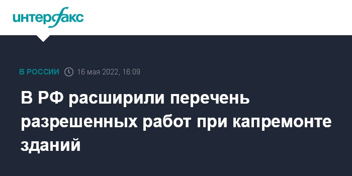 Москва. 16 мая. INTERFAX.RU - При капитальном ремонте зданий в РФ теперь разрешено проводить работы, ранее допускавшиеся только при реконструкции, сообщил сайт правительства России.