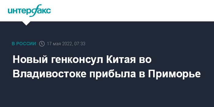 Москва. 17 мая. INTERFAX.RU - Во Владивосток прибыла новый генеральный консул КНР Пяо Янфань, сообщает во вторник представительство МИД РФ во Владивостоке.