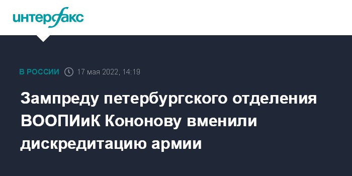 Зампреду петербургского отделения ВООПИиК Кононову вменили дискредитацию армии