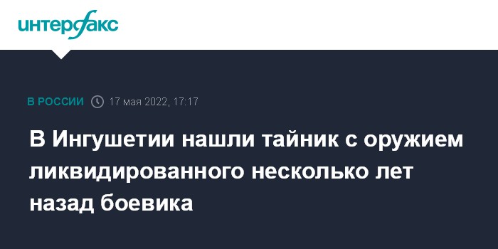Москва. 17 мая. INTERFAX.RU - В Сунженском районе Ингушетии обнаружены боеприпасы и оружие, принадлежавшие нейтрализованному при перестрелке участнику НВФ, сообщил "Интерфаксу" представитель республиканского МВД во вторник.