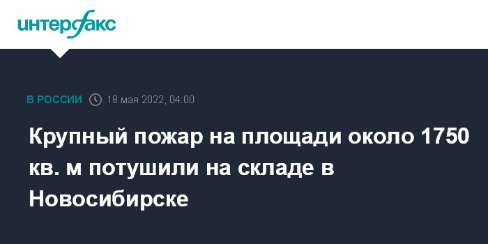 Москва. 18 мая. INTERFAX.RU - Усиленная группировка МЧС России в течение трех часов ликвидировала открытое горение в здании склада в Дзержинском районе Новосибирска на площади около 1750 кв. м и не позволила огню распространиться на соседние здания, сообщает ГУ МЧС России по региону.