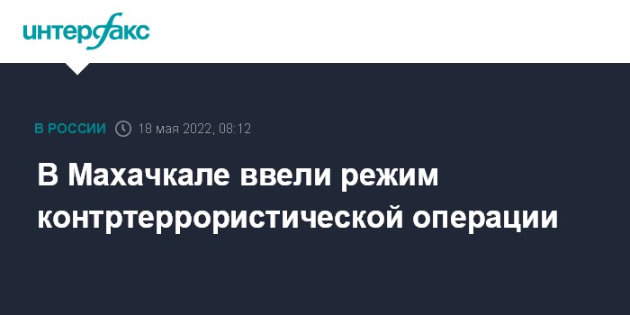 "Руководителем оперативного штаба в республике Дагестан по согласованию с председателем Национального антитеррористического комитета в соответствии с ч.3 ст.11 ФЗ от 06.03.2006 №35 - ФЗ "О противодействии терроризму" принято решение о введении правового режима контртеррористической операции с 2:45 18 мая 2022 года на территории Ленинского района года Махачкалы", - говорится в сообщении.