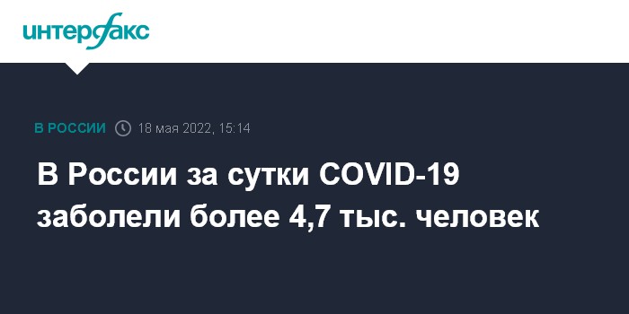 Москва. 18 мая. INTERFAX.RU - Суточный прирост новых заболевших коронавирусной инфекцией в РФ составил 4 732 случая, следует из данных оперативного штаба, обнародованных в среду.