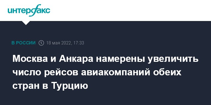 Москва. 18 мая. INTERFAX.RU - Власти РФ и Турции договорились увеличить количество пассажирских авиарейсов в Турцию российскими и турецкими авиакомпаниями, заявил вице-премьер РФ Александр Новак в эфире телеканала "Россия 24" (ВГТРК) по итогам визита в эту страну.
