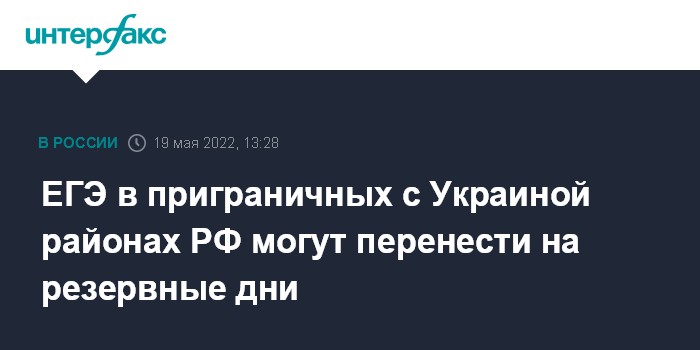 Москва. 19 мая. INTERFAX.RU - Проведение Единого госэкзамена (ЕГЭ) в приграничных с Украиной населенных пунктах может быть перенесено на резервный срок в зависимости от развития ситуации, сообщил глава Рособрнадзора Анзор Музаев.