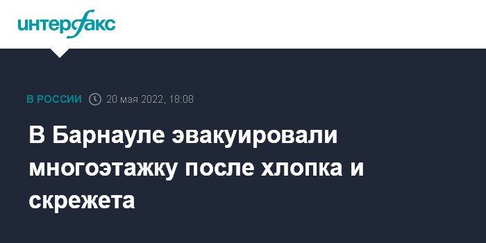 Москва. 20 мая. INTERFAX.RU - В Барнауле в многоэтажном жилом доме послышался "хлопок", затем жильцы услышали скрежет по стенам, кто-то сообщил в пожарную охрану, что в здании обрушились перекрытия, в результате там провели эвакуацию, сообщила пресс-служба мэрии.