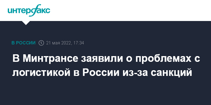 Москва. 21 мая. INTERFAX.RU - Министр транспорта России Виталий Савельев заявил о серьезных проблемах с логистикой в РФ в связи с антироссийскими санкциями.