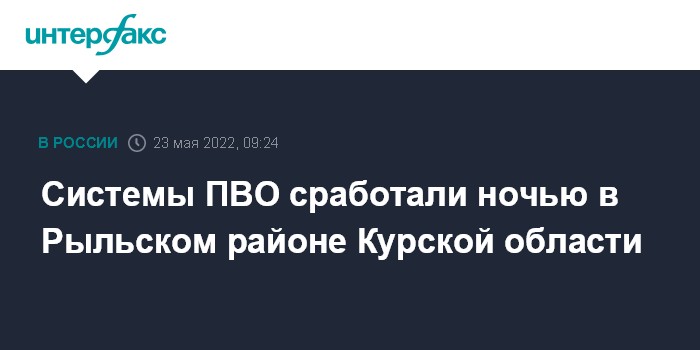Москва. 23 мая. INTERFAX.RU - Глава Рыльского района Курской области Андрей Лисман сообщил, что в понедельник в районе работала система ПВО.