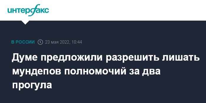 Москва. 23 мая. INTERFAX.RU - Думский комитет по госстроительству одобрил для включения в законопроект об организации местного самоуправления поправку, по которой полномочия муниципального депутата можно будет досрочно прекратить, если он дважды пропустил заседания без уважительной причины, пишут "Ведомости", ссылаясь на текст поправки.