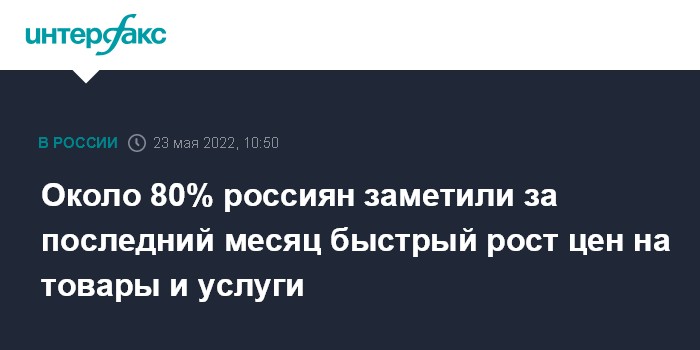 Около 80% россиян заметили за последний месяц быстрый рост цен на товары и услуги