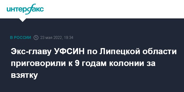 Экс-главу УФСИН по Липецкой области приговорили к 9 годам колонии за взятку