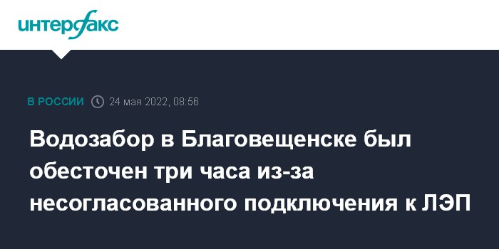 Водозабор в Благовещенске был обесточен три часа из-за несогласованного подключения к ЛЭП