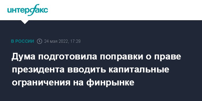 Дума подготовила поправки о праве президента вводить капитальные ограничения на финрынке