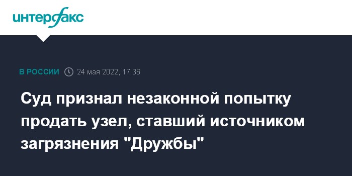 Москва. 24 мая. INTERFAX.RU - Арбитражный суд Поволжского округа отменил определения нижестоящих инстанций, которые отклонили жалобу АО "Транснефть-Дружба" (дочерняя компания ПАО "Транснефть") о признании незаконной продажу самарского узла "Лопатина", через который в "Дружбу" в 2019 году попала загрязненная нефть.