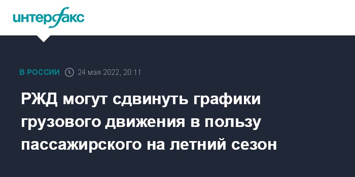 Москва. 24 мая. INTERFAX.RU - ОАО "РЖД" рассматривает вариант сдвига графиков грузового движения в пользу пассажирского для обеспечения летнего сезона.