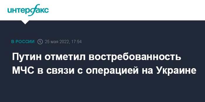 Москва. 25 мая. INTERFAX.RU - Президент Владимир Путин отметил востребованность МЧС в связи с российской военной операцией на Украине. Он сказал об этом, представляя коллективу министерства нового главу ведомства Александра Куренкова.