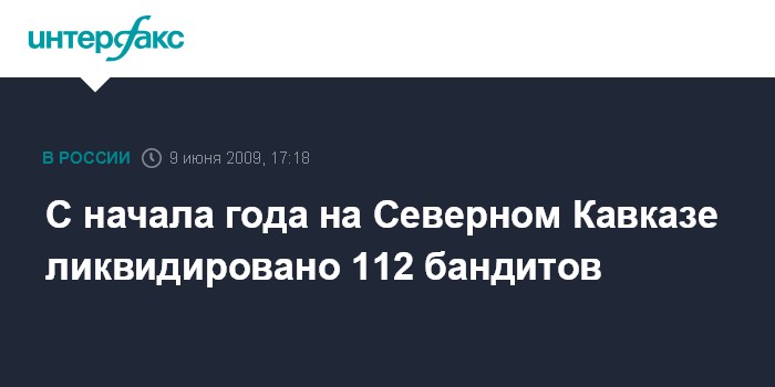Москва. 9 июня. INTERFAX.RU - Президент России Дмитрий Медведев заявляет, что ситуация на Северном Кавказе продолжает оставаться сложной. Глава государства отметил, что в результате этих преступлений в этом году было убито 75 сотрудников правоохранительных органов, 48 гражданских лиц. Общее количество ликвидированных бандитов - 112 человек. По его словам, это реальный результат работы.