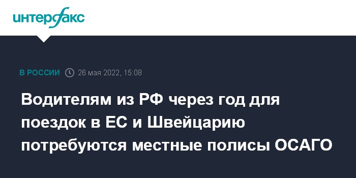 Москва. 26 мая. INTERFAX.RU - Российским водителям, планирующим поездки в страны Евросоюза или Швейцарию, с 1 июня 2023 года потребуется приобретать полис ОСАГО тех стран, куда они рассчитывают попасть, предупредил Российский союз автостраховщиков (РСА).