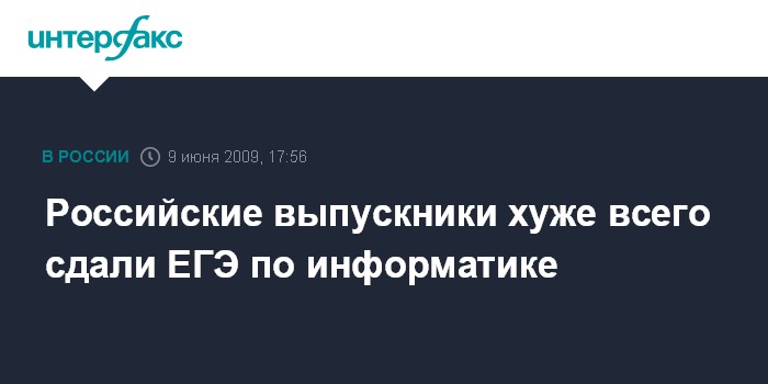 Москва. 9 июня. INTERFAX.RU - Рособрнадзор обнародовал окончательные результаты сдачи ЕГЭ по русскому языку, литературе, биологии, информатике и географии. Cогласно пресс-релизу ведомства, обязательный ЕГЭ по русскому языку сдавали все выпускники 2009 г. и часть выпускников предыдущих лет, которым этот экзамен необходим для поступления в вуз - всего 960 300 человек. В итоге из этих пяти экзаменов русский сдали лучше всего - лишь 6 % не преодолели минимальный порог в 37 баллов.