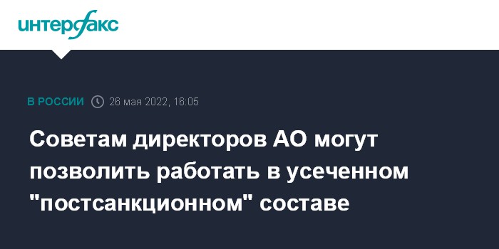 Советам директоров АО могут позволить работать в усеченном "постсанкционном" составе