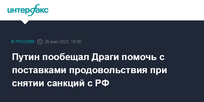 Путин пообещал Драги помочь с поставками продовольствия при снятии санкций с РФ