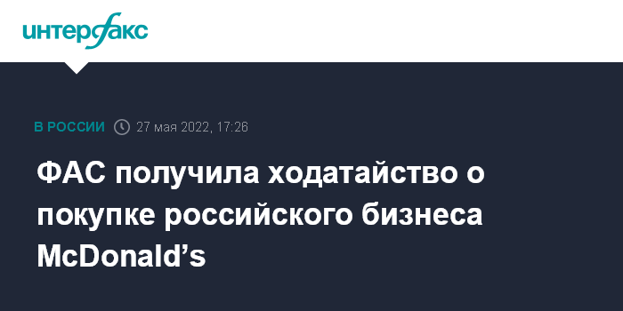ФАС получила ходатайство о покупке российского бизнеса McDonald’s