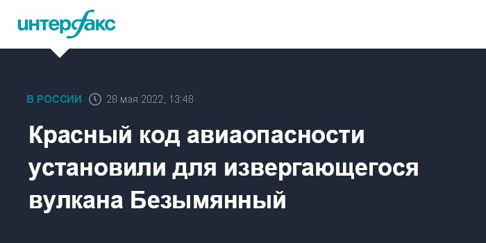 Москва. 28 мая. INTERFAX.RU - Извергающийся на Камчатке вулкан Безымянный в субботу вечером (по местному времени) выбросил пепел на высоту 15 км над уровнем моря, ему присвоен высший - красный - цветовой код опасности для авиации, сообщает Камчатская группа реагирования на вулканические извержения (KVERT) института вулканологии и сейсмологии Дальневосточного отделения РАН.