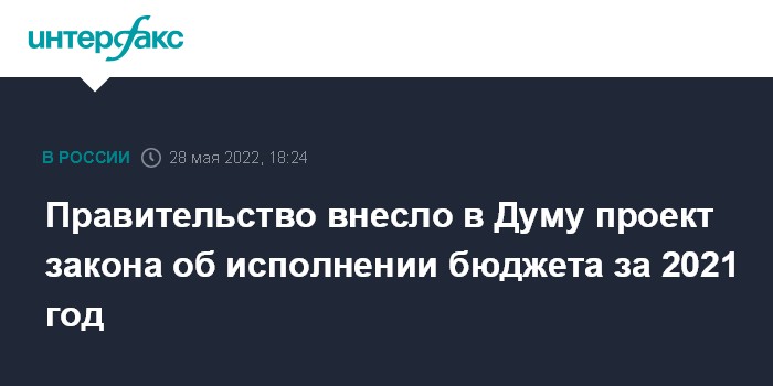 Правительство внесло в Думу проект закона об исполнении бюджета за 2021 год