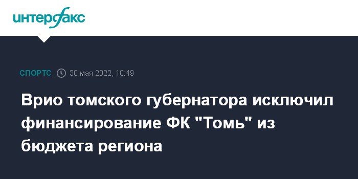 Москва. 30 мая. INTERFAX.RU - Врио губернатора Томской области Владимир Мазур исключил финансирование футбольного клуба "Томь" из бюджета региона, но пообещал команде помочь со спонсорами.