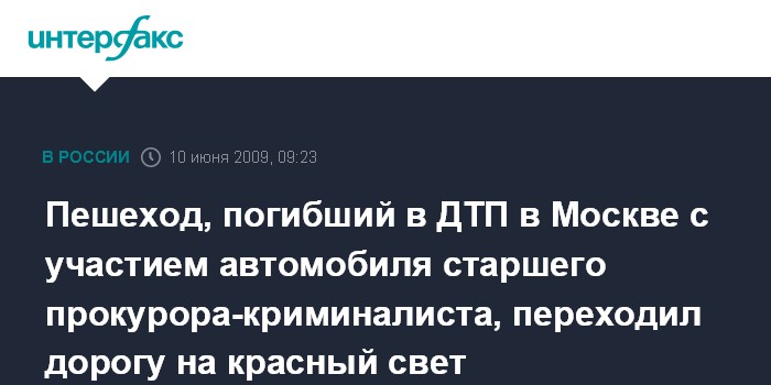 Москва. 10 июня. INTERFAX.RU - Следственный комитет при прокуратуре РФ по Москве возбудил уголовное дело по факту ДТП с участием автомобиля прокурора-криминалиста, в результате которого погиб пешеход.