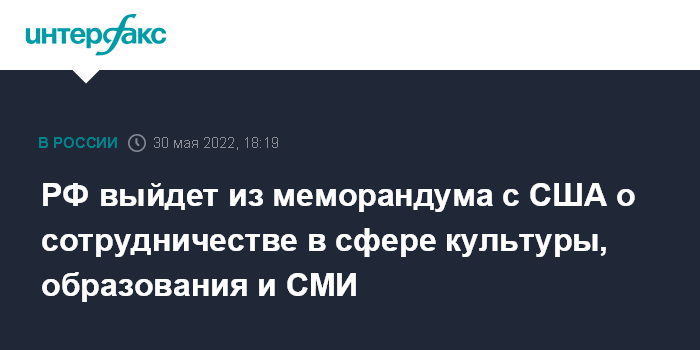 РФ выйдет из меморандума с США о сотрудничестве в сфере культуры, образования и СМИ