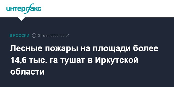 Москва. 31 мая. INTERFAX.RU - За минувшие сутки в Иркутской области было ликвидировано семь лесных пожаров площадью 621 га, продолжается тушение 10 очагов на площади 14,6 тыс. га, сообщила во вторник пресс-служба регионального правительства.