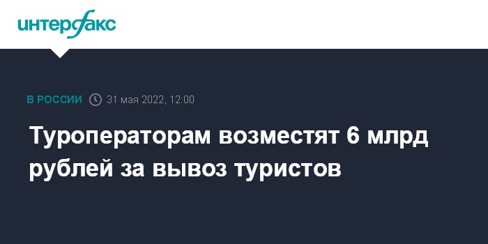 "На возмещение затрат туроператоров по вывозу туристов из резервного фонда правительства выделено 6 млрд рублей. Решение позволит поддержать туристическую отрасль, пострадавшую от недружественных действий иностранных государств", - говорится в пояснительной записке к документу.