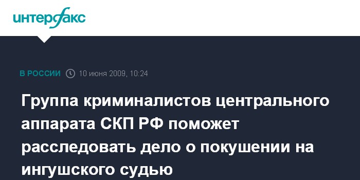 Группа криминалистов центрального аппарата СКП РФ поможет расследовать дело о покушении на ингушского судью