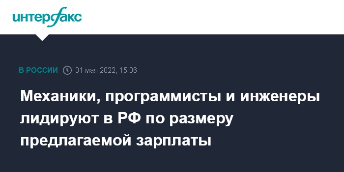 Механики, программисты и инженеры лидируют в РФ по размеру предлагаемой зарплаты