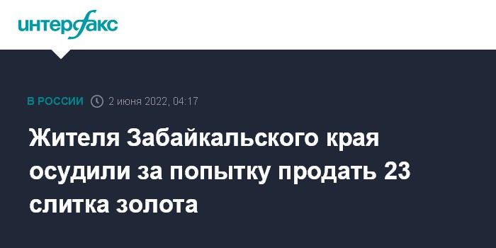 Москва. 2 июня. INTERFAX.RU - Центральный районный суд Читы признал жителя Забайкальского края и гражданина Азербайджана виновными в попытке реализации 23 слитков золота, сообщает краевая прокуратура.