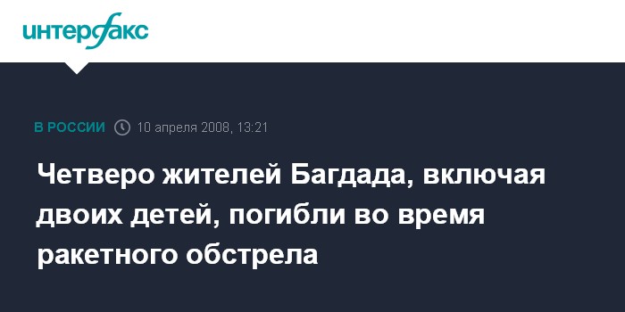Четверо жителей Багдада, включая двоих детей, погибли во время ракетного обстрела