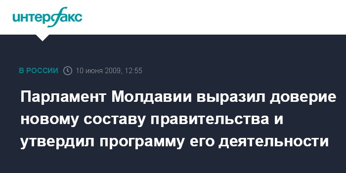 Москва. 10 июня. INTERFAX.RU – Парламент Молдавии выразил доверие новому составу правительства и утвердил программу его деятельности.