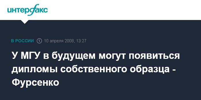 Москва. 10 апреля. INTERFAX.RU - Министр образования и науки РФ Андрей Фурсенко считает в будущем возможным решение вопроса о переходе МГУ на дипломы собственного образца. "В перспективе это реально", - сказал А.Фурсенко в четверг в беседе с журналистами.