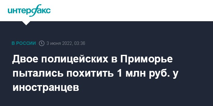 Двое полицейских в Приморье пытались похитить 1 млн руб. у иностранцев