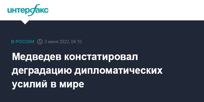 Москва. 3 июня. INTERFAX.RU - Зампред Совбеза РФ Дмитрий Медведев заявил, что его совет "закрыть посольства на замки" после начала специальной военной операции РФ на Украине был ироничным, но для этого есть основания.