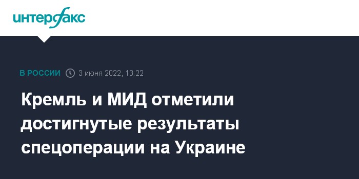 Москва. 3 июня. INTERFAX.RU - Спецоперация российских войск на Украине достигла определенных результатов, однако она будет продолжена до выполнения всех поставленных задач, заявил на брифинге пресс-секретарь президента Дмитрий Песков.