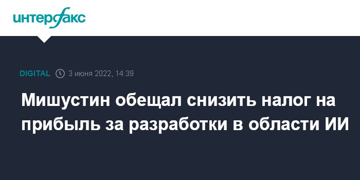 Москва. 3 июня. INTERFAX.RU - Правительство разработало поправки в Налоговый кодекс, которые предусматривают снижение налога на прибыль для компаний, внедряющих инновационные отечественные технологии, в том числе в области искусственного интеллекта, сообщил на конференции ЦИПР-2022 премьер-министр Михаил Мишустин.