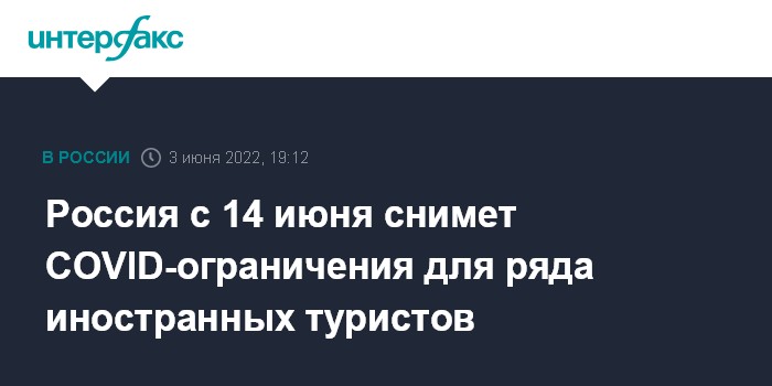 Россия с 14 июня снимет COVID-ограничения для ряда иностранных туристов