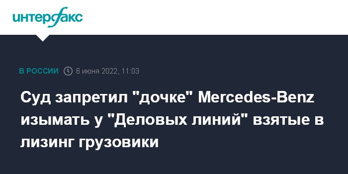 "С марта 2022 года концерн Mercedes-Benz объявил об уходе с рынка и перестал исполнять сервисные, гарантийные и иные обязательства перед нами. В связи с этим мы были вынуждены обратиться в суд за защитой своих прав", - прокомментировали "Интерфаксу" причину обращения в суд в пресс-службе "Деловых линий", не уточнив, о каком именно объеме договоров в количестве транспортных средств идет речь.